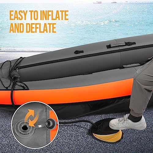 Quick Setup & Portability-- Set up this foldable kayak in just 7 minutes using the included air pump. Its compact and portable design allows for easy storage and transportation