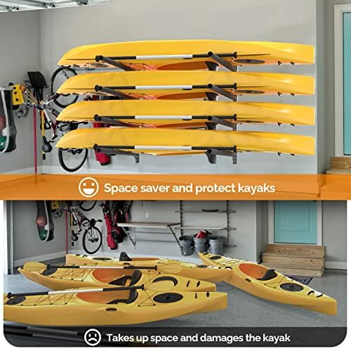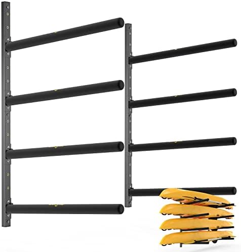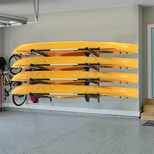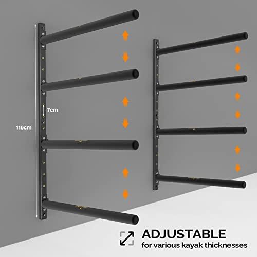 550LBS Weight Capacity --This kayak wall rack is made of durable corrosion and rust-resistant heavy-duty steel material with a grey color that can hold up to 138 lbs per level, up to 550 lbs total