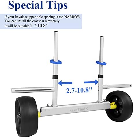 GanFindX Lightweight & Portable Sit on Top Kayak Cart Dolly with Flat-Free Wheels, Width Adjustable Kayak Wheels, Suitable for Kinds of Kayaks and Canoe with Plug Holes