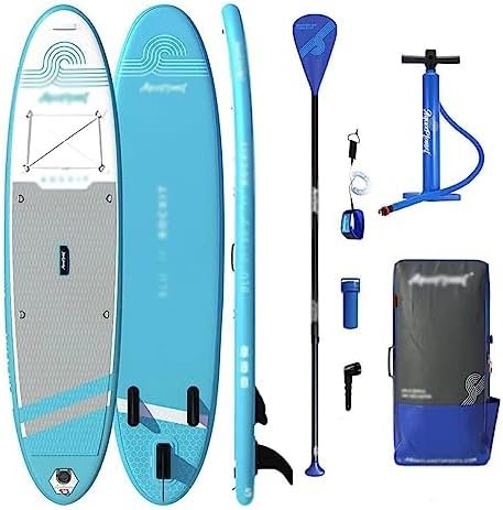 🏄 COMPLETE SUP KIT & FAST INFLATION -- We provide adjustable paddles, hand air pump, backpack, safety belt, repair kit and wrench in the package. Equipped with a manual air pump, it can be easily inflated and used. When deflated and rolled up, the paddle board is easy to carry and store.