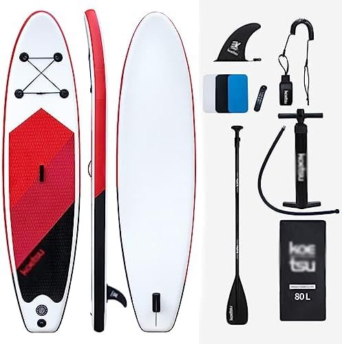 🏄 COMPLETE SUP KIT & FAST INFLATION -- We provide adjustable paddles, hand air pump, backpack, safety belt, repair kit and detachable fins in the package. Equipped with a manual air pump, it can be easily inflated and used.