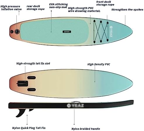 ★Safer ★Extra-thick layer high-quality PVC shell and numerous drip seams internal structure, provide excellent air retention. The non-slip EVA deck increases friction to ensure you are more stable during sliding. Ankle straps will help you get around the paddle board even if you do fall in the water.