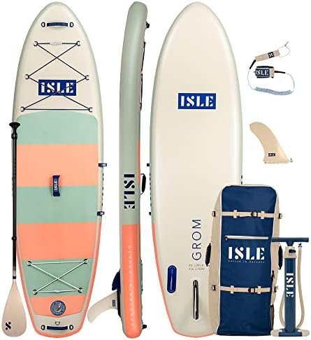 ISLE Grom Inflatable Stand Up Paddle Board for Children | Incl. Touring Center Fin, Backpack, Hand Pump, Paddle