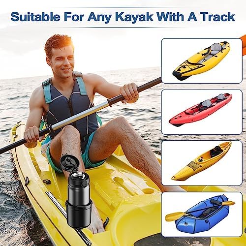【Large Capacity】This kayak cup holder is designed for holding different sizes and volume of water bottles within 3.9 inch in diameter and within 18oz to 40oz in volume. Fit most of fishing kayak with a track mount.