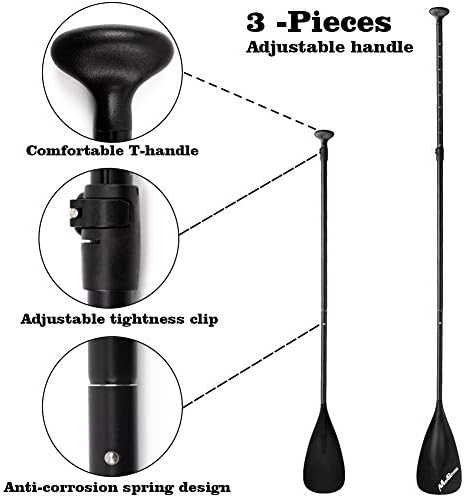 SUP PADDLE PREMIUM MATERIAL - Adopt high strength aluminum shaft, this sup paddle is lightweight but durable, won't deform by force. Durable PP and fiberglass blade could resist waves caused by high winds, it will have long lifetime.