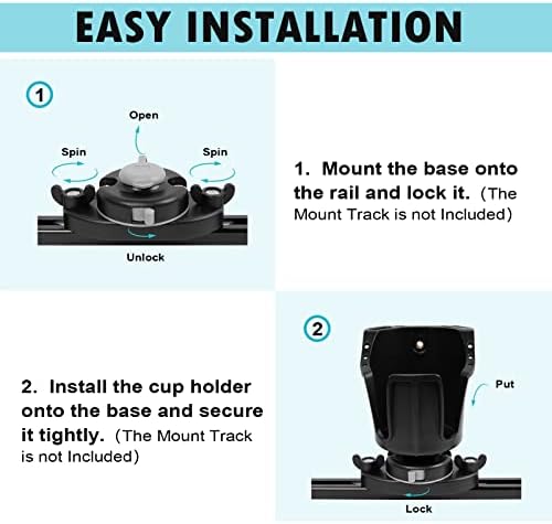 Easy to Install: The kayak cup holder track mount comes with a mounting system that can be attached to your kayak in seconds. There are two easy track mounting ways including vertical and horizontal installation.