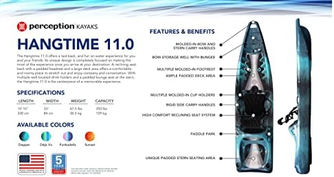 Crafted for Adventure: Built for all-around fun, the Hangtime 11 is perfect for both beginners and seasoned paddlers alike. Embark on your water adventures with this innovative, USA-made kayak, designed to make every outing a memorable one.