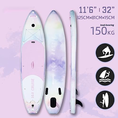 The paddle board is a versatile all-around travel board, perfect for novice and multi-water paddlers. The 11-foot (325cm) long board makes for faster, straighter paddling, making it better for open water and travel. The board is 32 inches (81cm) wide for greater stability. The 6-inch (15cm) thick board gives it better draft and greater buoyancy. The thickness and volume of this paddle board allow it to take into account the speed of rowing when it has good stability, and it can also row smoothly when surfing.