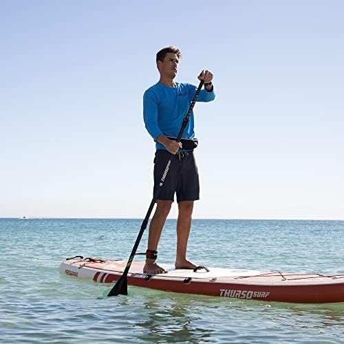 【Tear-Drop Blade Shape】THURSO SURF Carbon hybrid paddle's innovative tear-drop blade profile amplifies paddling power and efficiency. This paddleboard paddle blade features a 10 deg dihedral shape to get the maximum power from each stroke. Strengthened by a reinforcement rib, the blade will not twist or distort during even the most aggressive paddle strokes.