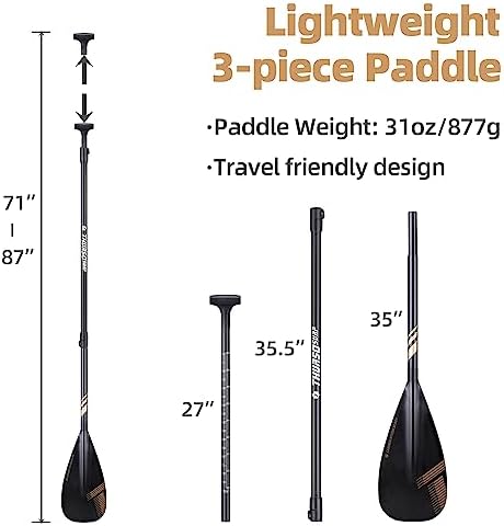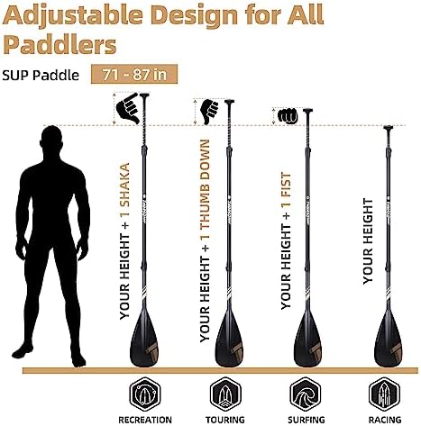 【Adjustable for All Paddlers】Our carbon paddle is adjustable from 71'' to 87'' (180 - 220 cm) to accommodate your height and skill level. Whether you're a beginner or an experienced paddler, this paddle delivers the ideal combination of control, power, and stability for recreational SUP, touring and racing.
