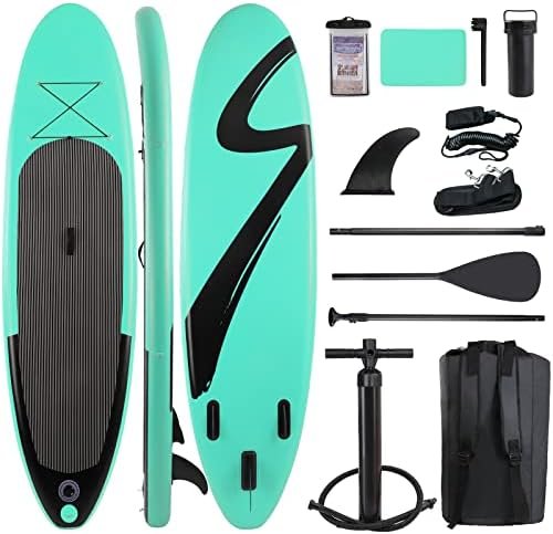 Take your water adventures to the next level with TLSUNNY's 10FT Inflatable Stand Up Paddle Board. It comes with a complete package that includes an adjustable paddle, pump, removable fin, and storage bungee.