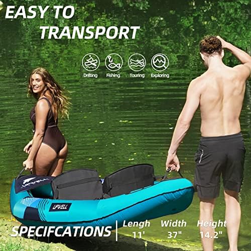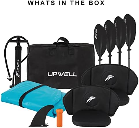 UPWELL 13'6”/11' Inflatable Recreational Kayak - 2 Person with High Pressure Floor and Accessories Including Kayak Seats with High Back Support, Aluminum Alloy Paddle , Fin, Repair kits, carry bag and Hand Pump