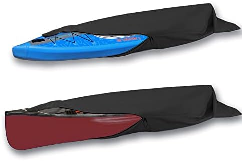 WIDE USAGE:The full-coverage kayak cover has more space to store your kayak accessories (paddles, life jackets, fishing accessories) in addition to the kayak. Three sizes are available. Model A fits kayaks up to 11ft long and 27 wide (beam width), Model B – 13 ft (L)x30”(W), and Model C – 16ft(L)x36”(W).